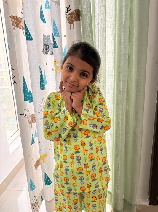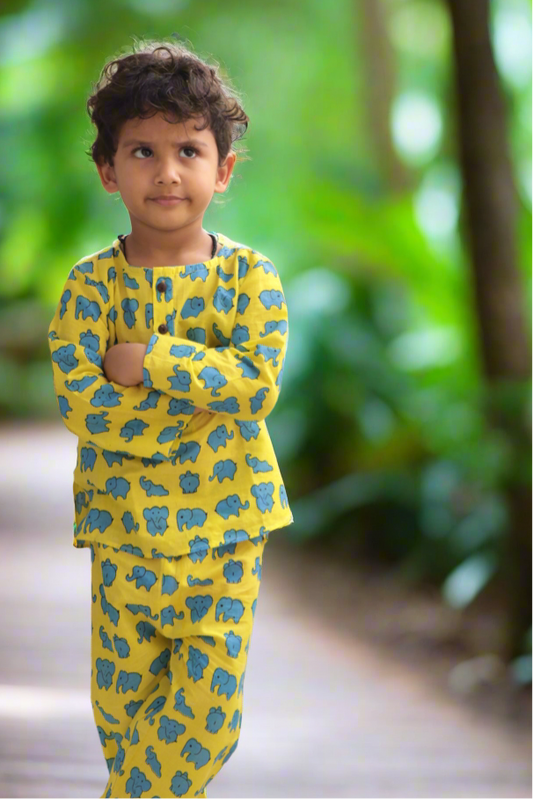Dreamy Elephants Sleepwear - Kids pure cotton elephant printed night suit - Yellow