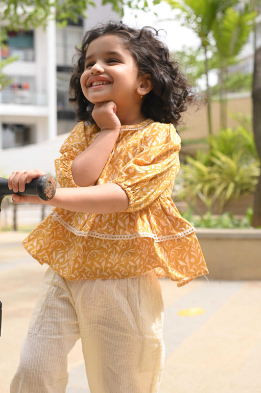 Mustard Floral - Top & Pants Set
