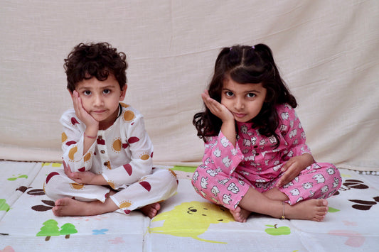 Dreamy Elephants Sleepwear - Kids pure cotton elephant printed night suit - Pink