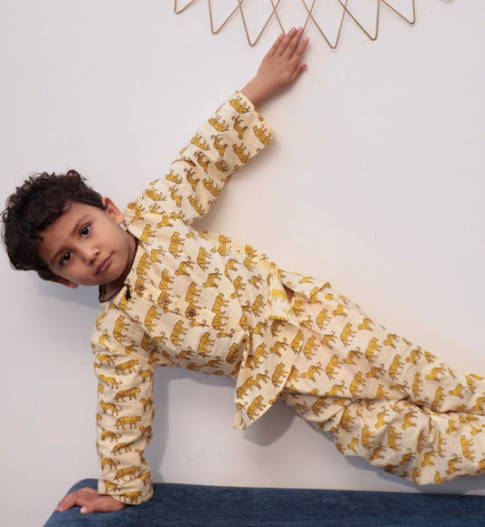 Dreamy Elephants Sleepwear - Kids pure cotton elephant printed night suit - Yellow