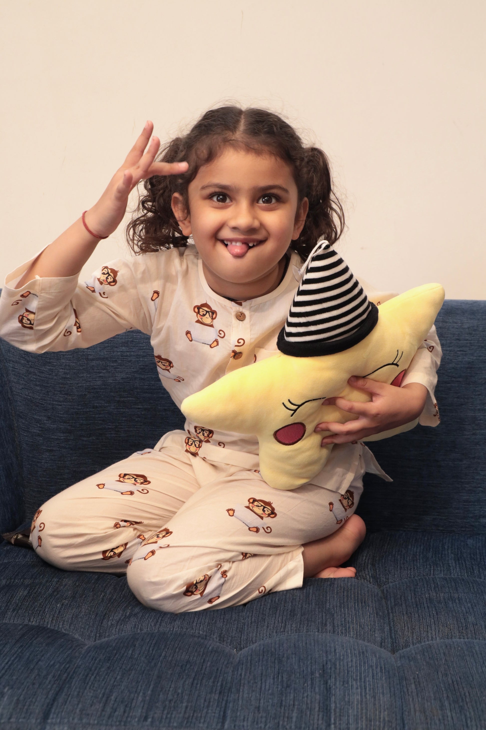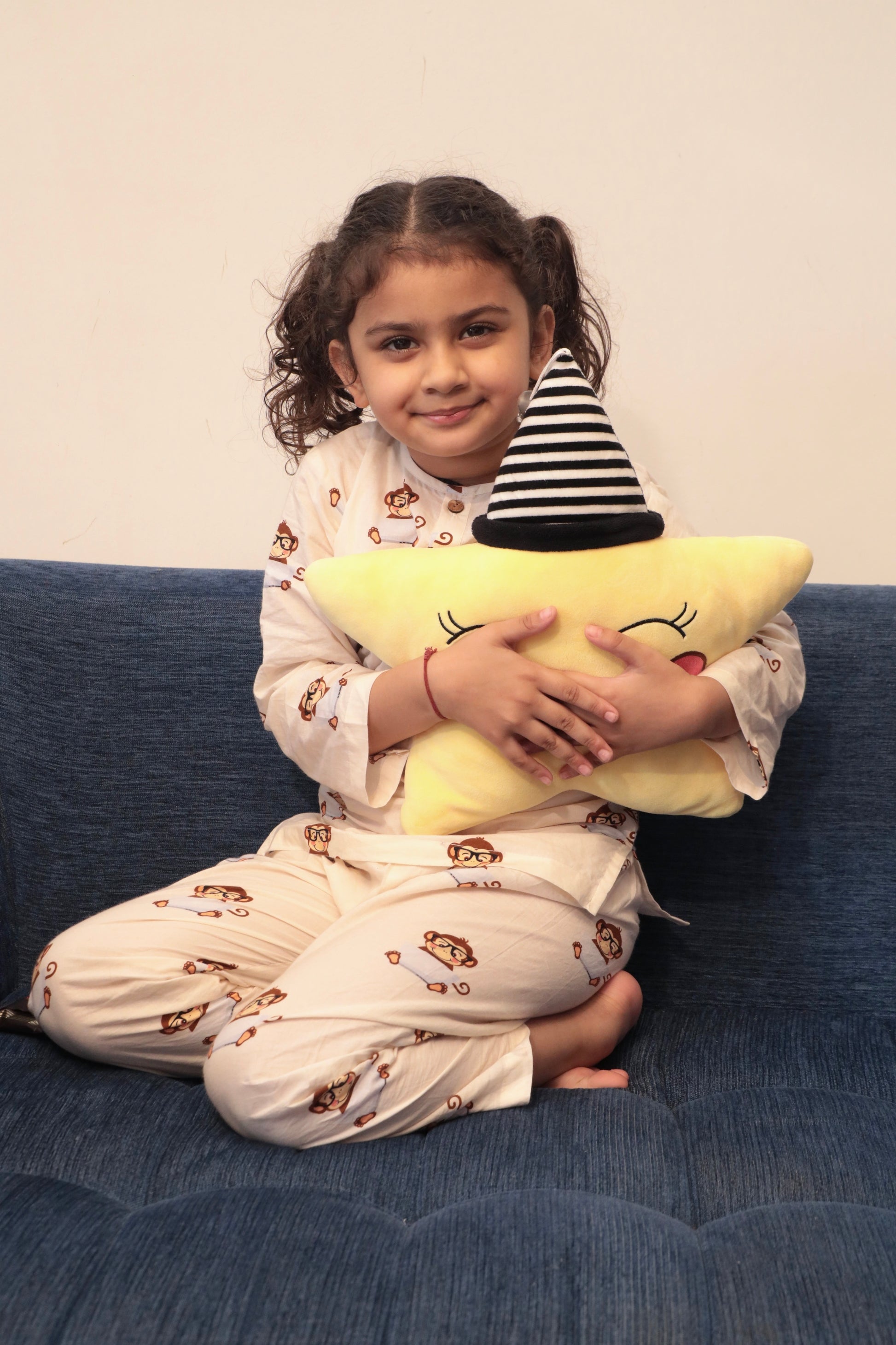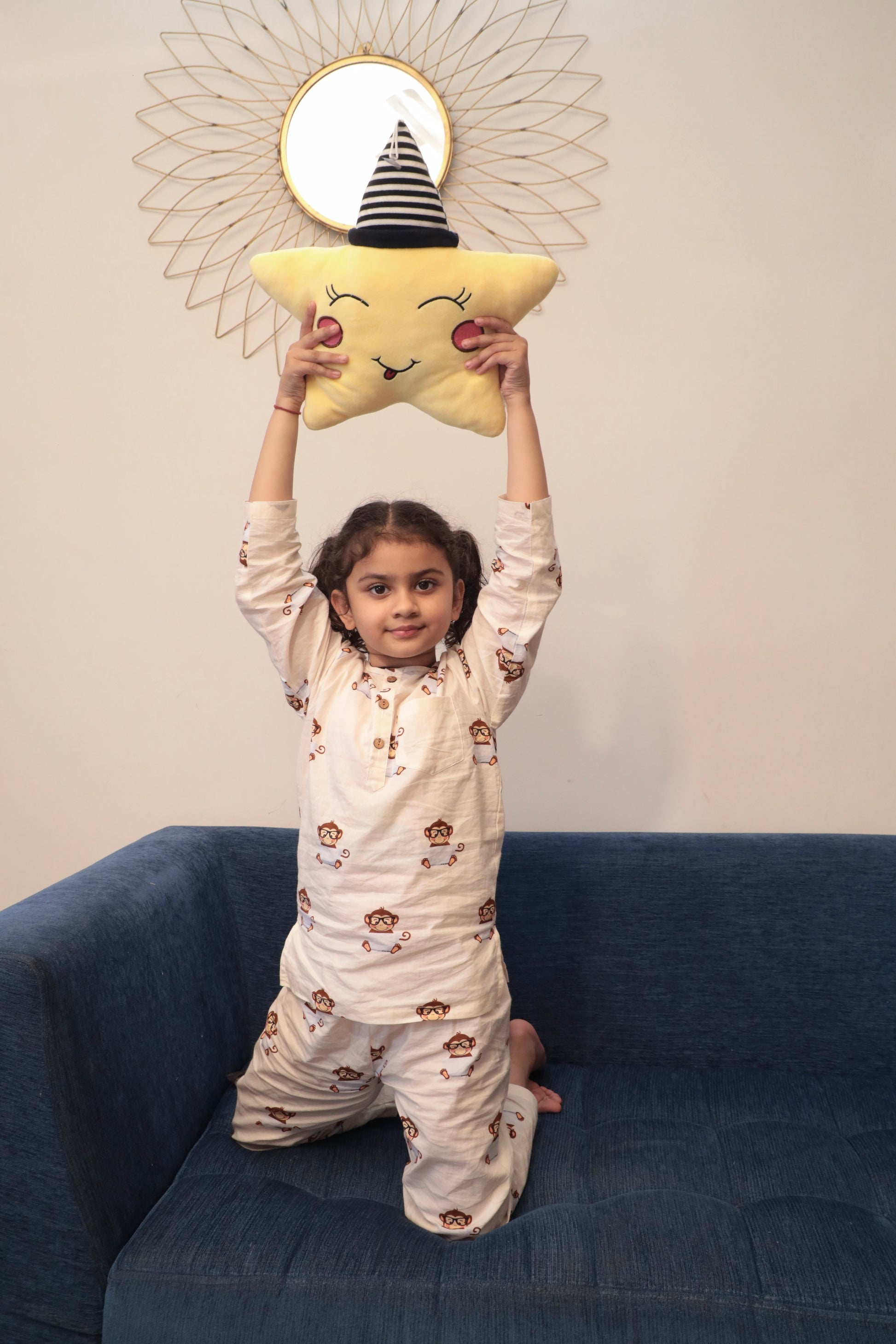 ✨ Beige coloured Monkey printed unisex kids night wear.